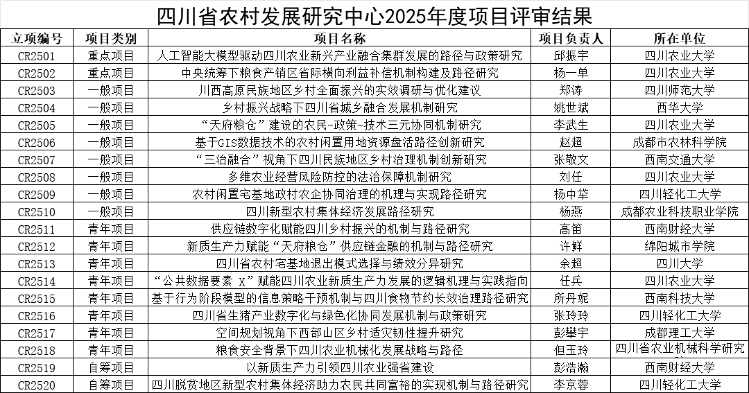 附件: 2025年四川省农村发展研究中心项目拟立项名单